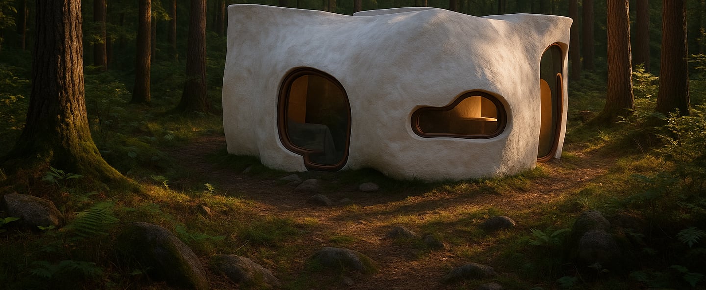 Nestled within a dense forest landscape, this project explores the intersection of organic architecture and immersive living. The structure is conceived as a sculptural, monolithic form—softly contoured and grounded—designed to feel grown from the earth rather than constructed upon it.